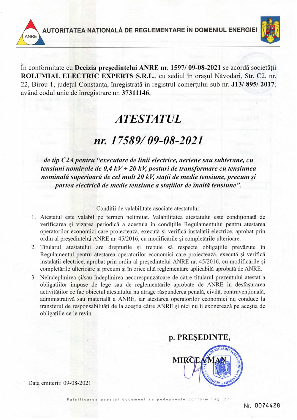 Autorizatii ANRE Atestat ANRE ANRE C2A-EXECUTIE MT ROLUMIAL-EXPERTS ANRE D1 – PROIECTARE-IT-ROLUMIAL-CONSULTING Autorizatii ANRE was last modified: iunie 18th, 2024 by rolumial